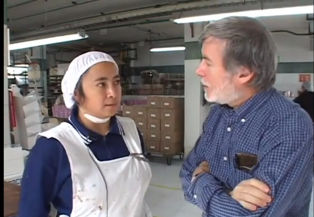(above image) Downtown Mexico City where Ricardo Ainslie conducted many interviews for "Looking North." (below image) Ricardo Ainslie interviewing chocolate factory worker who returned home after illegally migrating to the U.S.